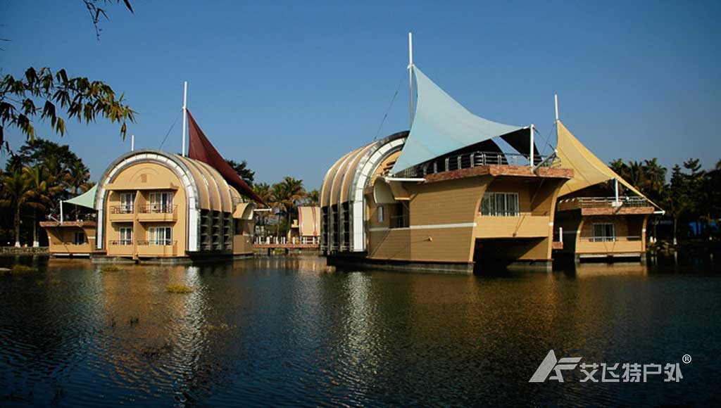 16栋度假别墅用独特的建筑形式展示了树居、船居、洞居、穴居等人类古老而生态的居住方式,客房内设施先进、配套设施齐全。